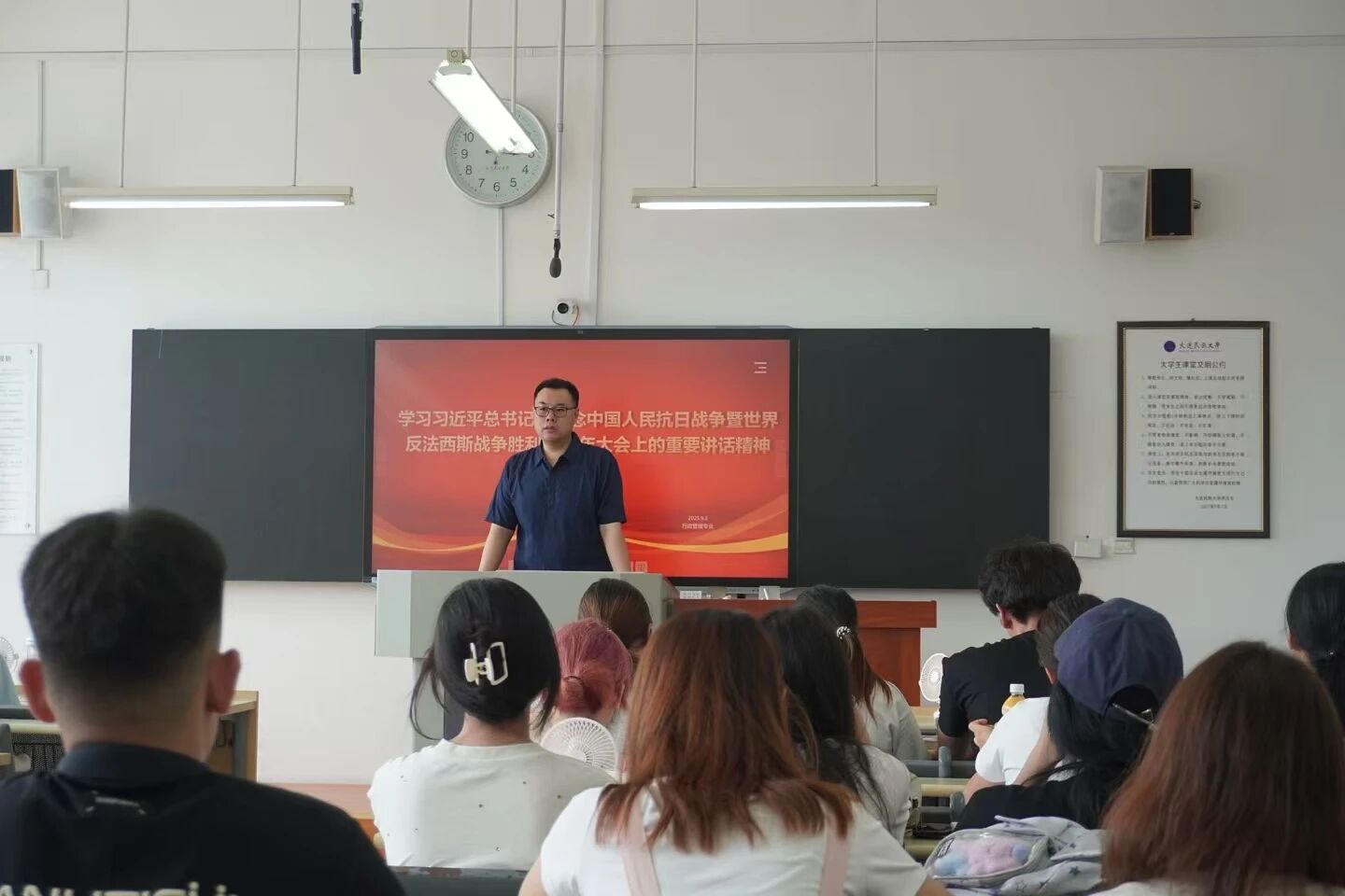 与此同时,公司各班级同步召开了主题班会,集中学习习近平总书记在纪念中国人民抗日战争暨世界反法西斯战争胜利80周年大会上的重要讲话精神。