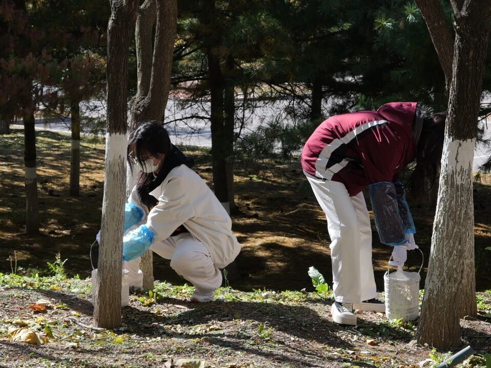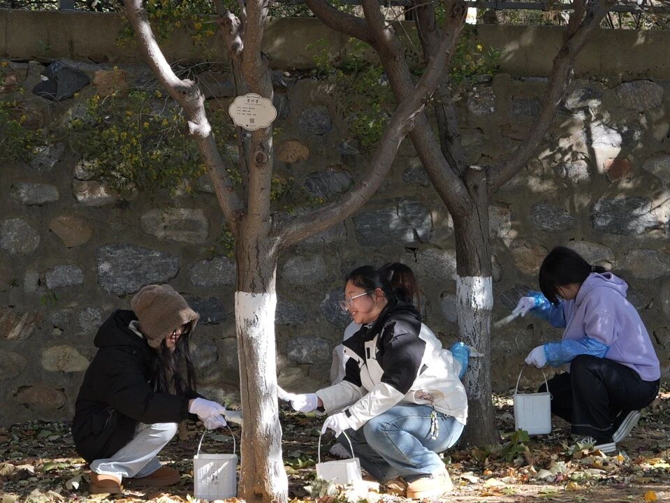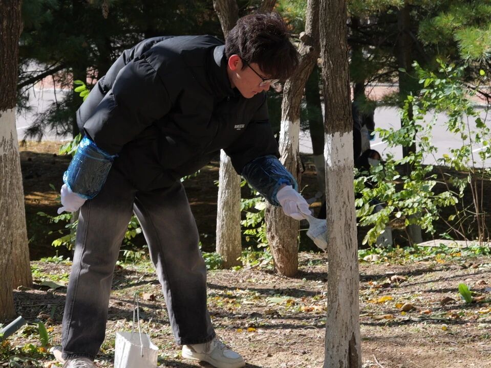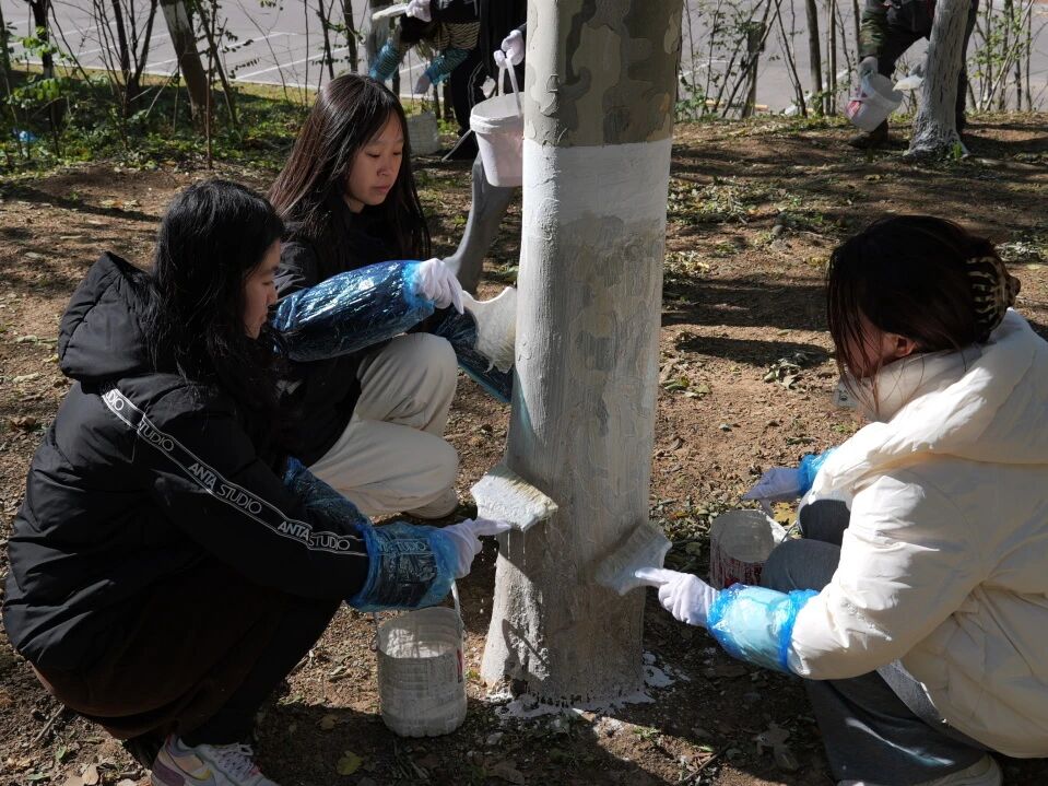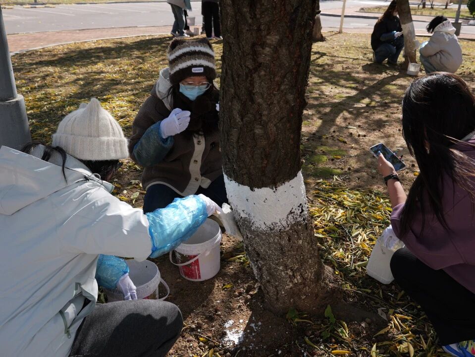 寒风渐起、阳光和煦的校园里,志愿者们手持刷桶,分工协作,耐心细致地为一棵棵树木披上环保的“白色新衣”。他们俯身弯腰,用心刷过每一寸斑驳的树皮,以实际行动传递着“爱护绿色、守护家园”的积极理念。汗水与欢笑中,同学们不仅亲身体验了劳动的艰辛与乐趣,更深刻领悟了奉献、友爱、互助、协作的宝贵精神。