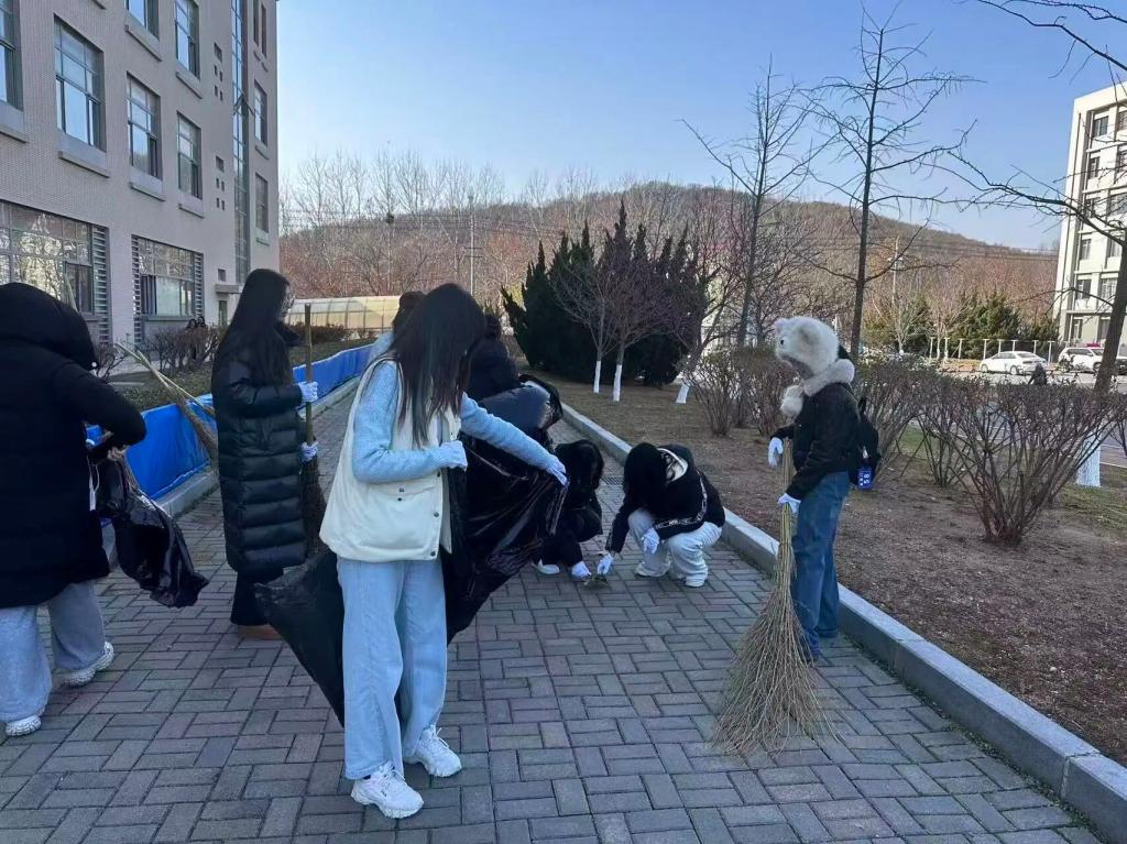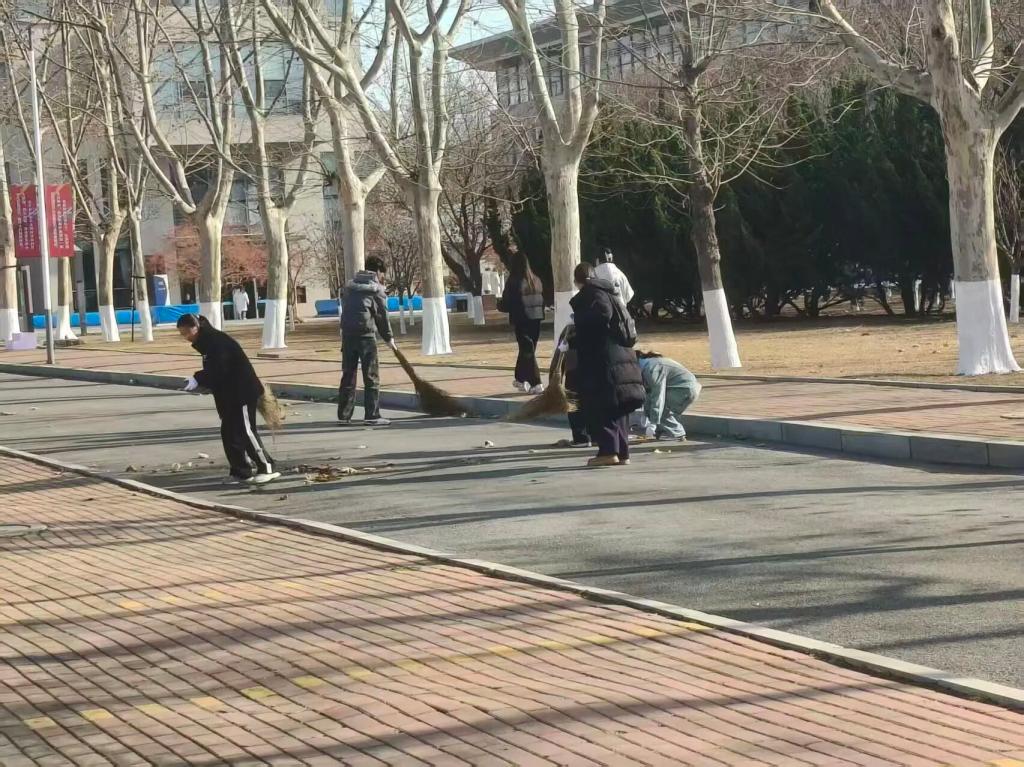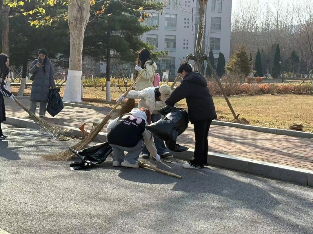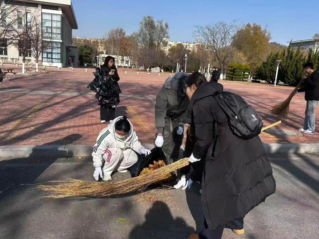 秋风拂过,落叶翩跹。在校园主干道、教学楼周边与绿化区域,志愿者们分工明确、配合默契:有人挥动扫帚,将落叶归拢成堆;有人手执铁锹,将叶片装入收集袋;有人负责搬运整理,有人细致清理草丛杂物。大家有条不紊、干劲十足,来自五湖四海的各年级同学在劳动中加深了解、增进情谊,以实际行动展现务实协作、甘于奉献的精神风貌,成为深秋校园中一道温暖而亮丽的风景。