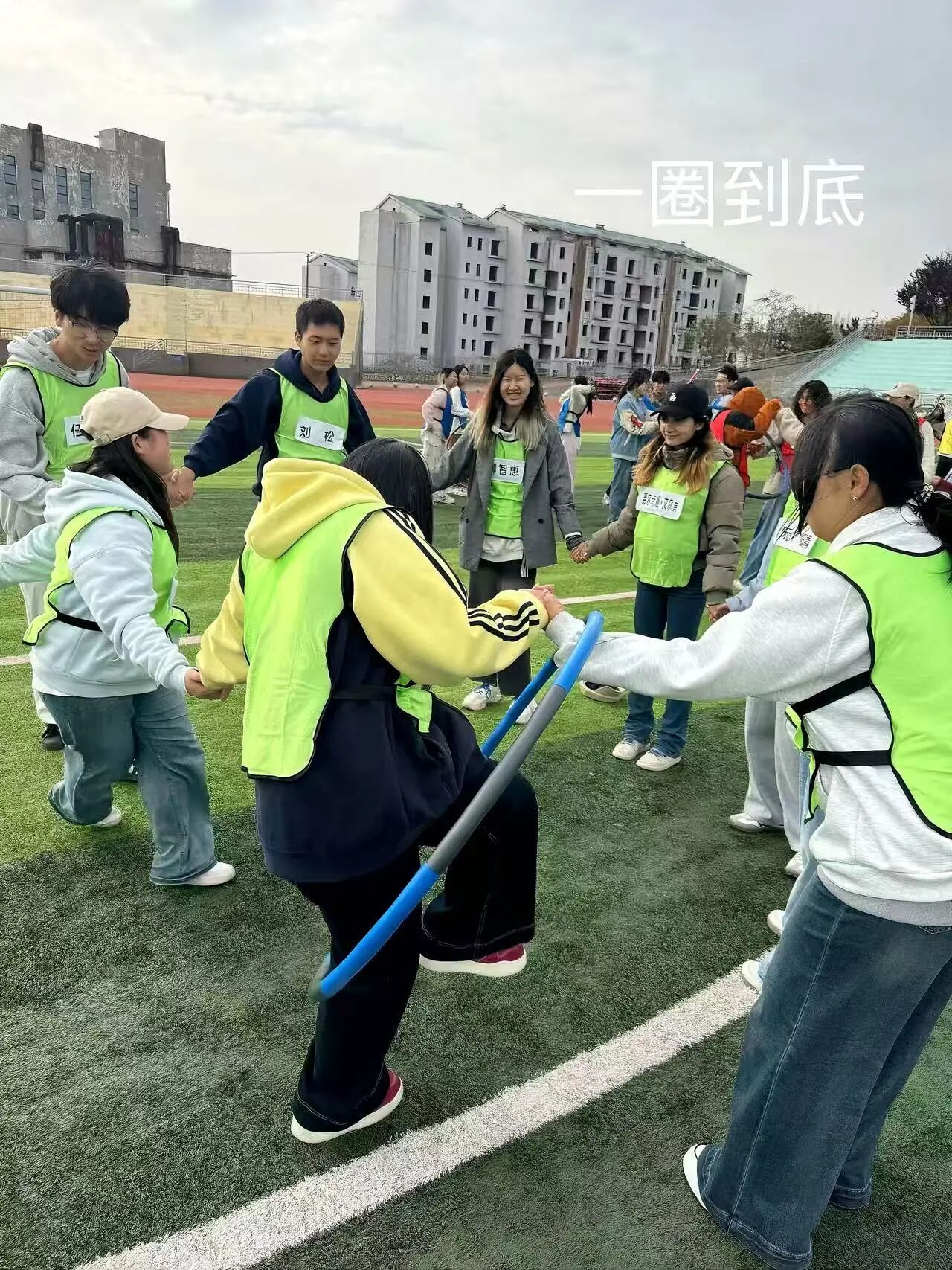 15人围蹲绑脚踝,有人手忙脚乱绕成小疙瘩