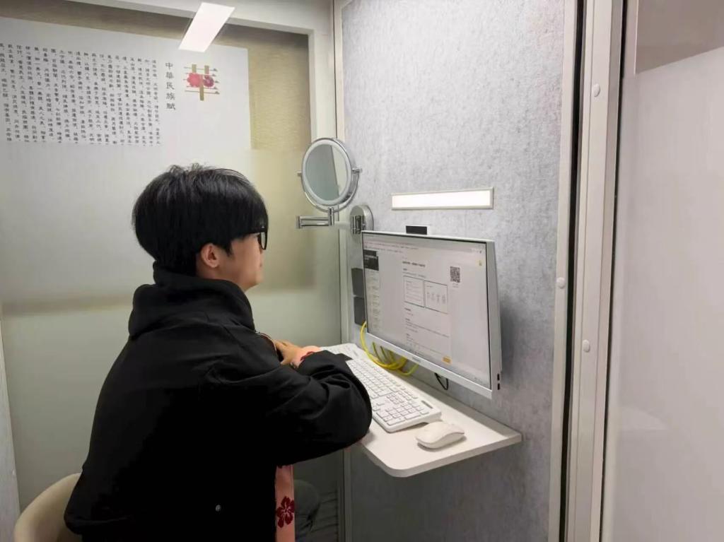 走进闻道楼二楼,员工们排队使用AI模拟面试亭的场景映入眼帘。整洁清新的环境与专业化的设备让人很快可以专注沉浸在面试状态。低年级的同学正在进行面试的模拟体验,根据自我需求选择不同行业、岗位的题库,完成从自我介绍到专业应答的全流程模拟。高年级的员工正在使用面试亭进行远程面试的体验、考研调剂的准备,通过反复练习积累实战经验,提升面试通过率。
